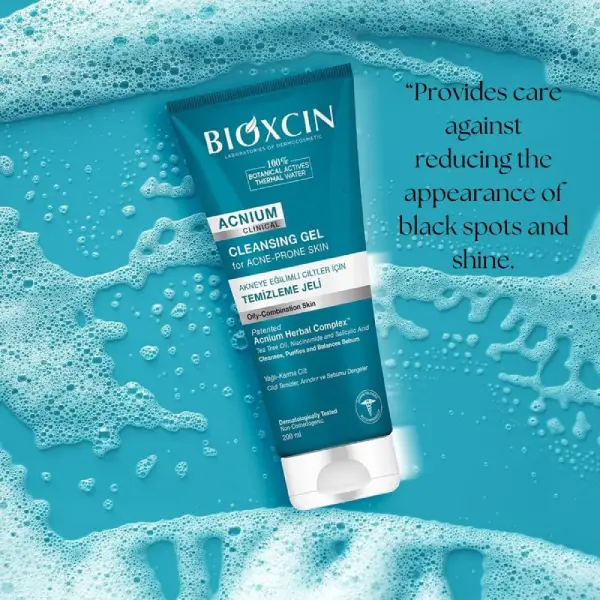 ژل شستشوی صورت بیوکسین ضد جوش و ضد لک مناسب پوست های چرب و مستعد جوش و آکنه 200 میلی لیتر bioxcin