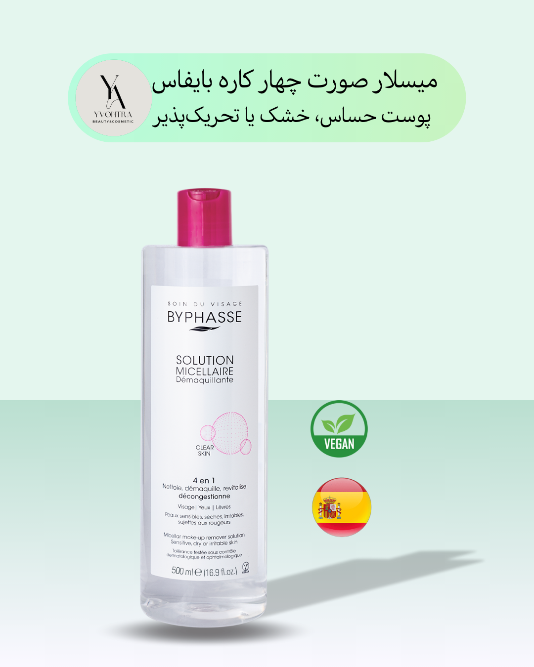 - ترکیبات آرایش پاک کن 4 کاره مخصوص خشک و حساس بایفاس