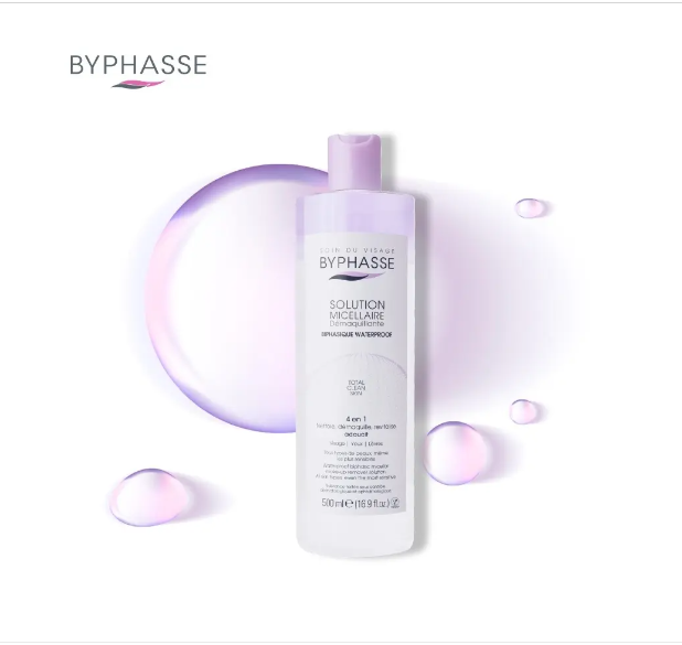 محلول میسلار دوفاز ضد آب BYPHASSE یک آب پاک کننده جدید و عالی است که با وجود فاز آبی با میسل ها (ذرات فعال سطحی کوچک) پوست را تمیز کرده و باعث احیای پوست می گیرد، از طرفی فاز روغنی به حذف مقاوم ترین مواد آرایشی ضد آب کمک می کند. همین امر باعث می شود تا به راحتی آرایش و آلودگیهای روی پوست را تمیز کند این محصول فاقد تست حیوانی می باشد و 86 درصد فرمولاسیون این میسلار واتر بایفاس دارای منشا طبیعی می باشد .