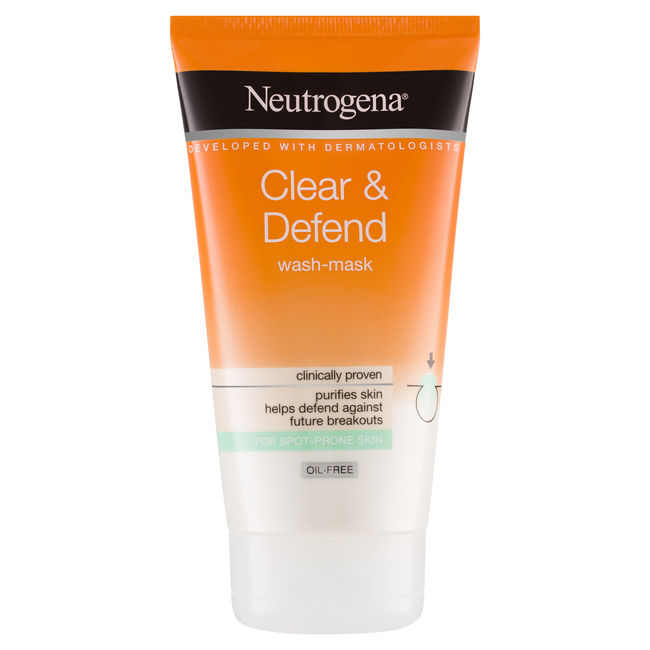 ماسک و شوینده صورت مناسب پوست های مستعد جوش و لک نوتروژنا مدل Clear& Defend wash mask