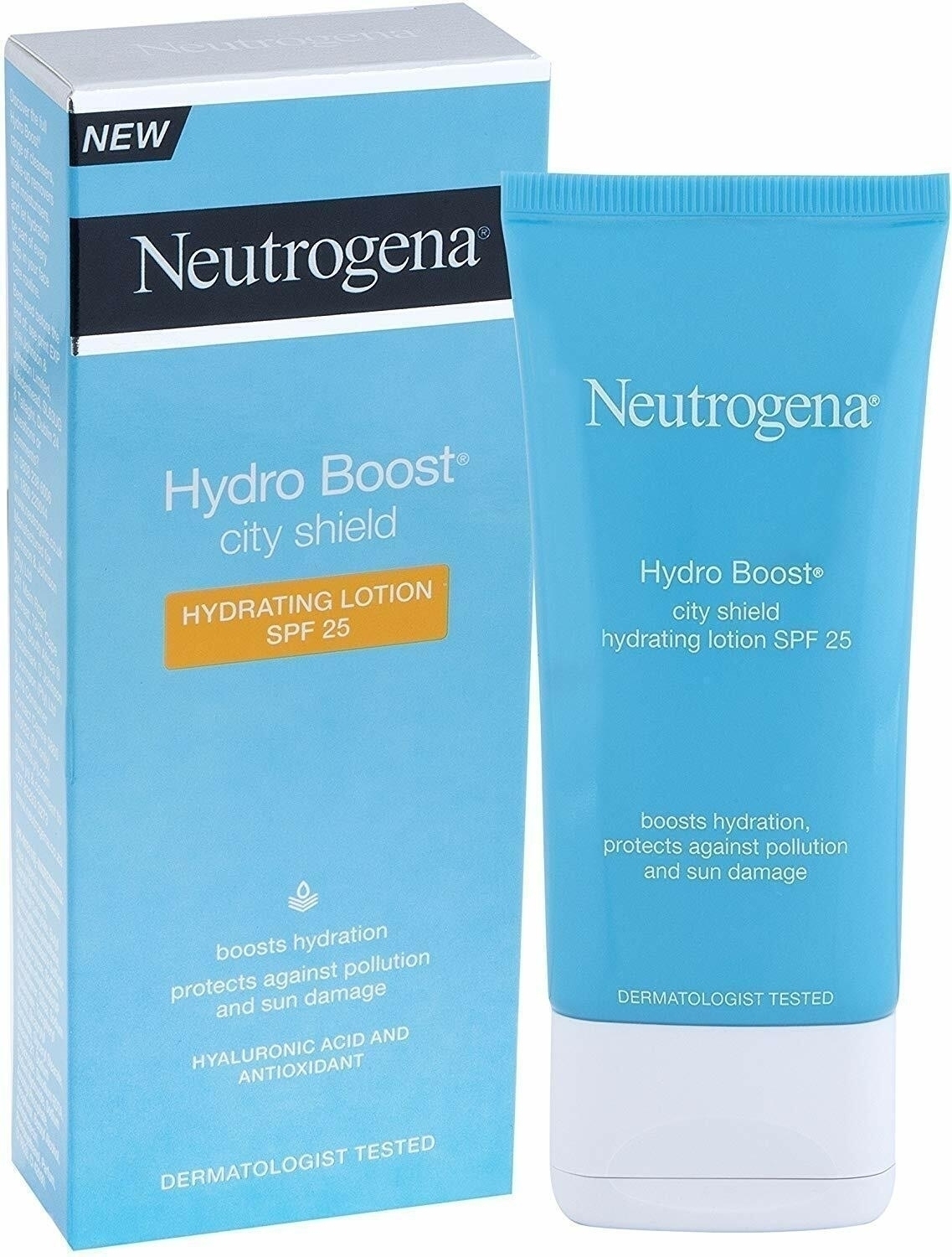 ضد آفتاب سیتی شیلد نوتروژینا این کرم یک آبرسان قدرتمند بوده و به دلیل داشتن هیالورونیک اسید پوست رابه صورت عمقی آبرسانی کرده و رطوبت پوست را در طول روز حفظ می کند. کرم آبرسان هیدرا بوست سیتیشیلد SPF 25 نوتروژنیا یک ضد آفتاب قوی نیز محسوب می شود و به لطف و SPF 25 از پوست در برابر اشعه های مضر نور خورشید محافظت کرده و شما را بی نیاز از استفاده جداگانه ضد آفتاب می کند.