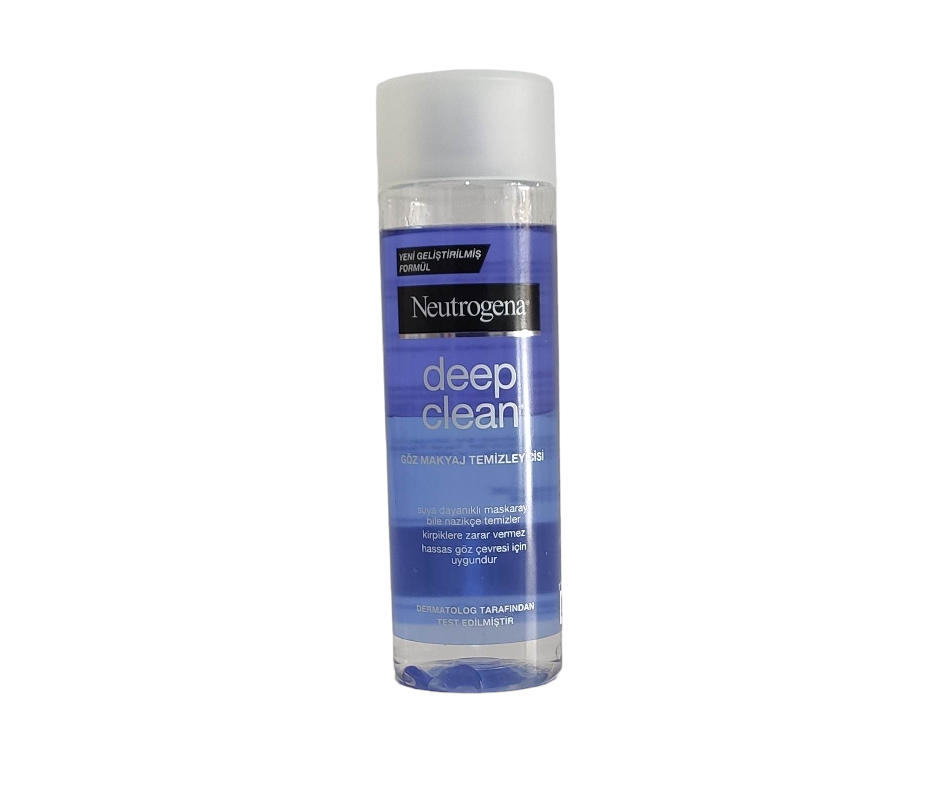 آرایش پاک کن دو فاز دور چشم نوتروژنا مدل deep clean با حجم ۱۲۵ میلی لیتر است محصولی است فرمولاسیون ملایمی دارد و به آسانی و راحتی می تواند آرایش را پاک کند مواد آرایشی را به طور عمیق تمیز می کند، شبیه یک مایع یکدست یک رنگ به نظر می رسد. با این حال ، مانند همه محصولات دو فاز لایه روغن پایه که در قسمت بالایی تجزیه شده است و لایه زیرین باید با تکان دادن کاملاً مخلوط شود. محصولی که ادعا می شود برای پوست های حساس و استفاده کنندگان از لنز مناسب است. مواد آرایشی را پاک میکند بدون آن که به چشم آسیبی برساند. این محصول پاک کنندگی ملایمی دارد و برای استفاده روزانه مناسب می باشد، به دلیل اینکه در این محصول ازعصاره آلوئه ورا و خیار استفاده شده است آبرسانی بالایی دارد، به عنوان ضد التهاب طبیعی عمل می کند، پوست را به طور کامل پاک می کند و چربی از خود باقی نمی گذارد، مناسب انواع پوست حتی پوست های حساس، و برای پاک کردن آرایش چشم مناسب است، پوست را شاداب و تمیز می کند.