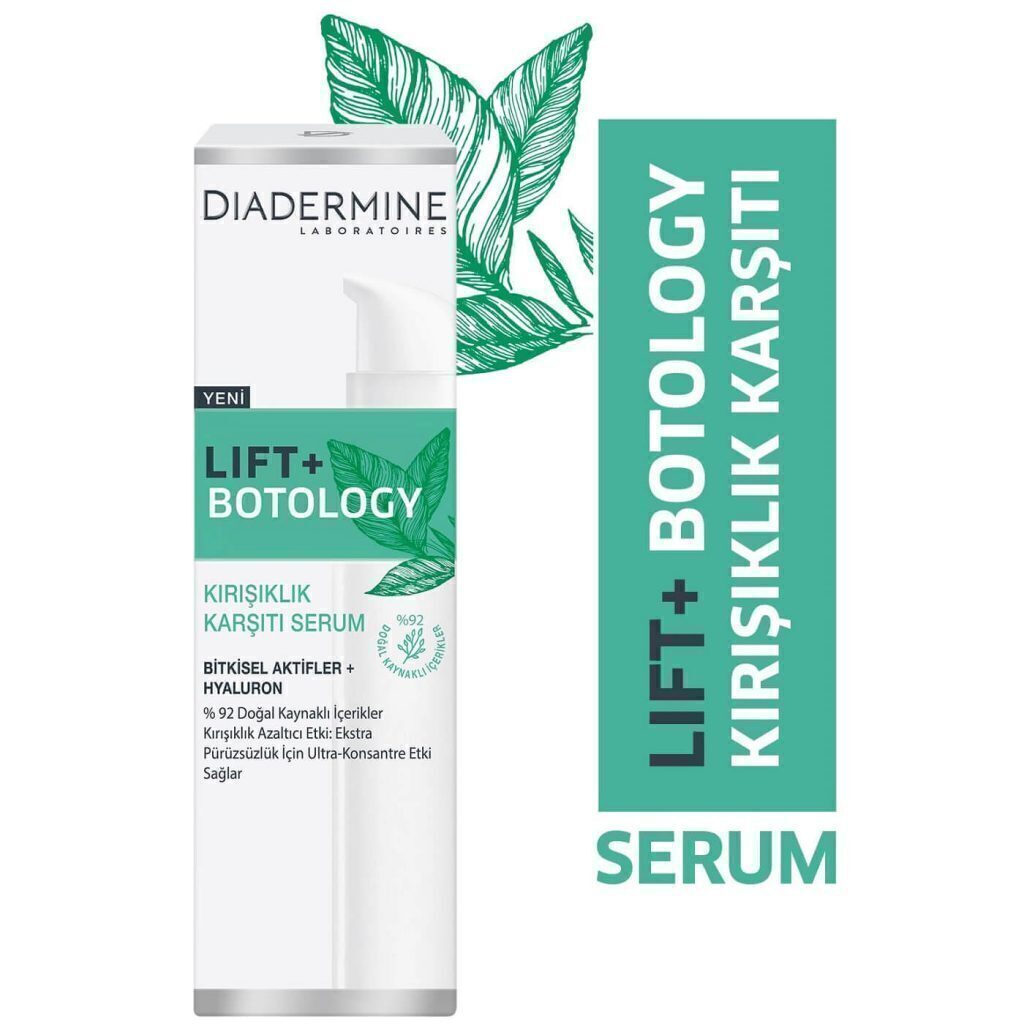 سرم لیفتینگ و ضد چروک صورت دیادرمین حاوی 92 درصد ترکیبات کاملا ارگانیک و گیاهی می باشد و در صورت استفاده منظم در کاهش چین و چروک پوست صورت نقش بسزایی ایفا می کند. عصاره چای سبز و چای سیاه که سرشار از آنتی اکسیدان هستند در ترکیبات این سرم به میزان زیادی بکار رفته است که از ایجاد چین و چروک جلوگیری می کنند.