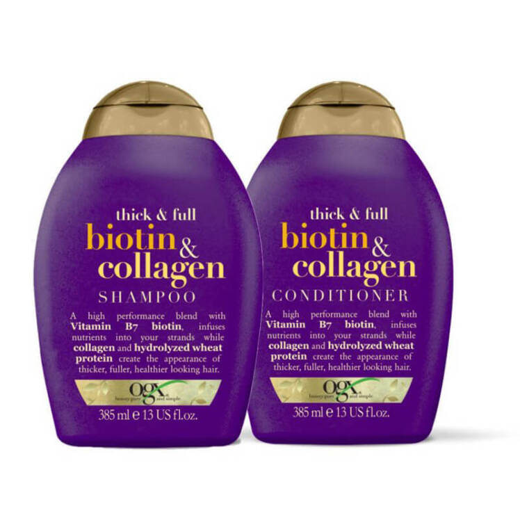 مقایسه شامپو مو او جی ایکس مدل Biotin & Collagen حجم 385 میلی لیتر با فروشگاه تماس بگیرید اورجینال مسافری