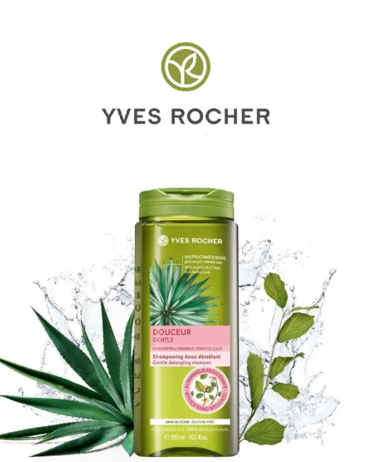 شامپو سر موهای آسیب دیده ایوروشه Yves Rocher Douceur Gentle Detangling Shampoo - 300 Ml