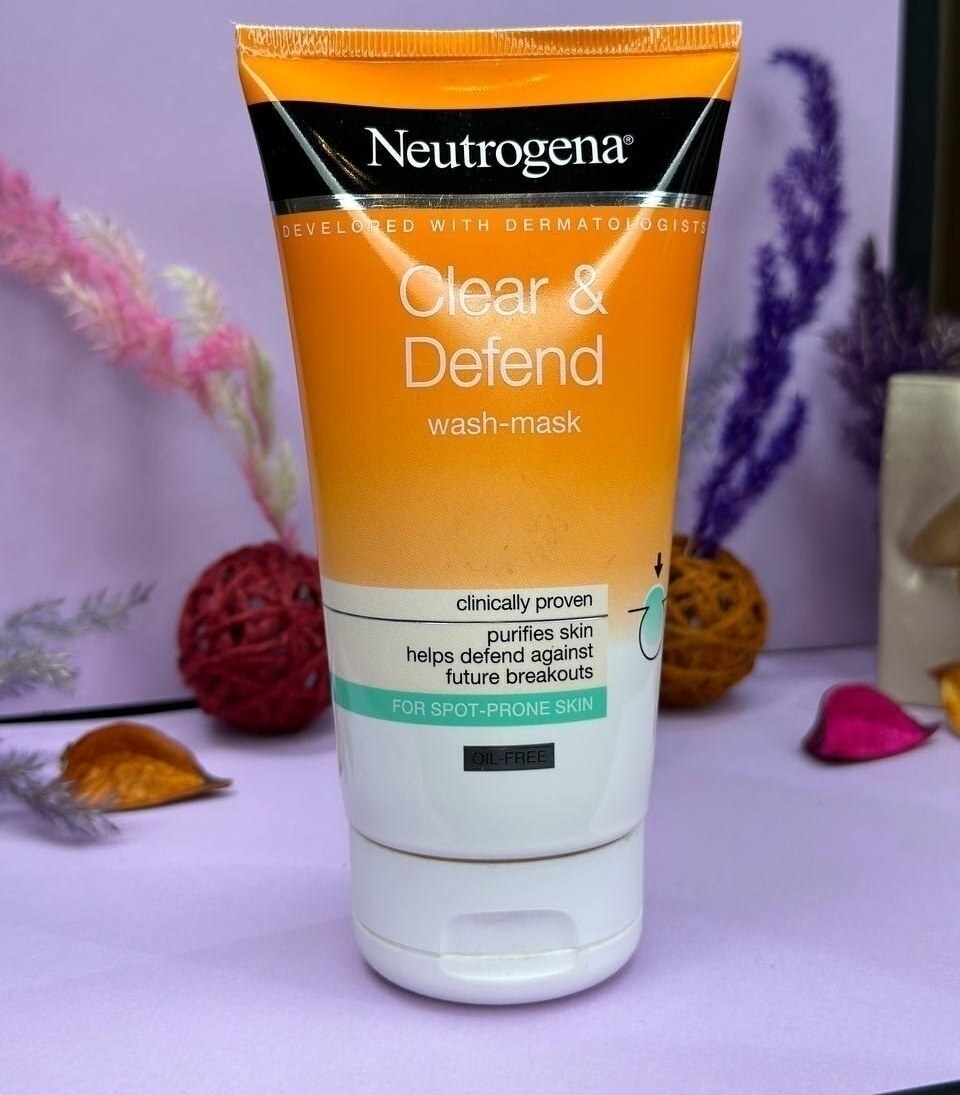 ماسک و شوینده صورت مناسب پوست های مستعد جوش و لک نوتروژنا مدل Clear& Defend wash mask
